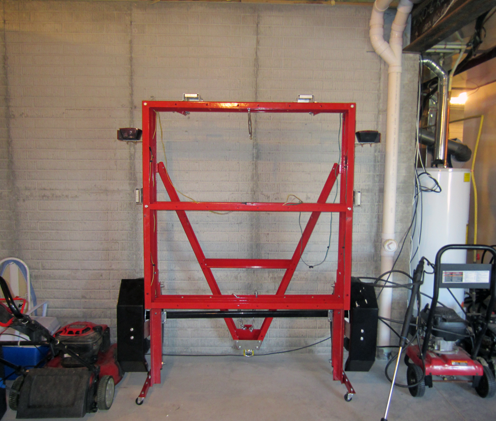 The trailer folded up and wheeled nicely into the basement, so now it's hanging out with all the lawn care equipment. I would like to clean dirty and lake scum off it this winter and maybe wax it, since this isn't a galvanized trailer and will be prone to rusting.